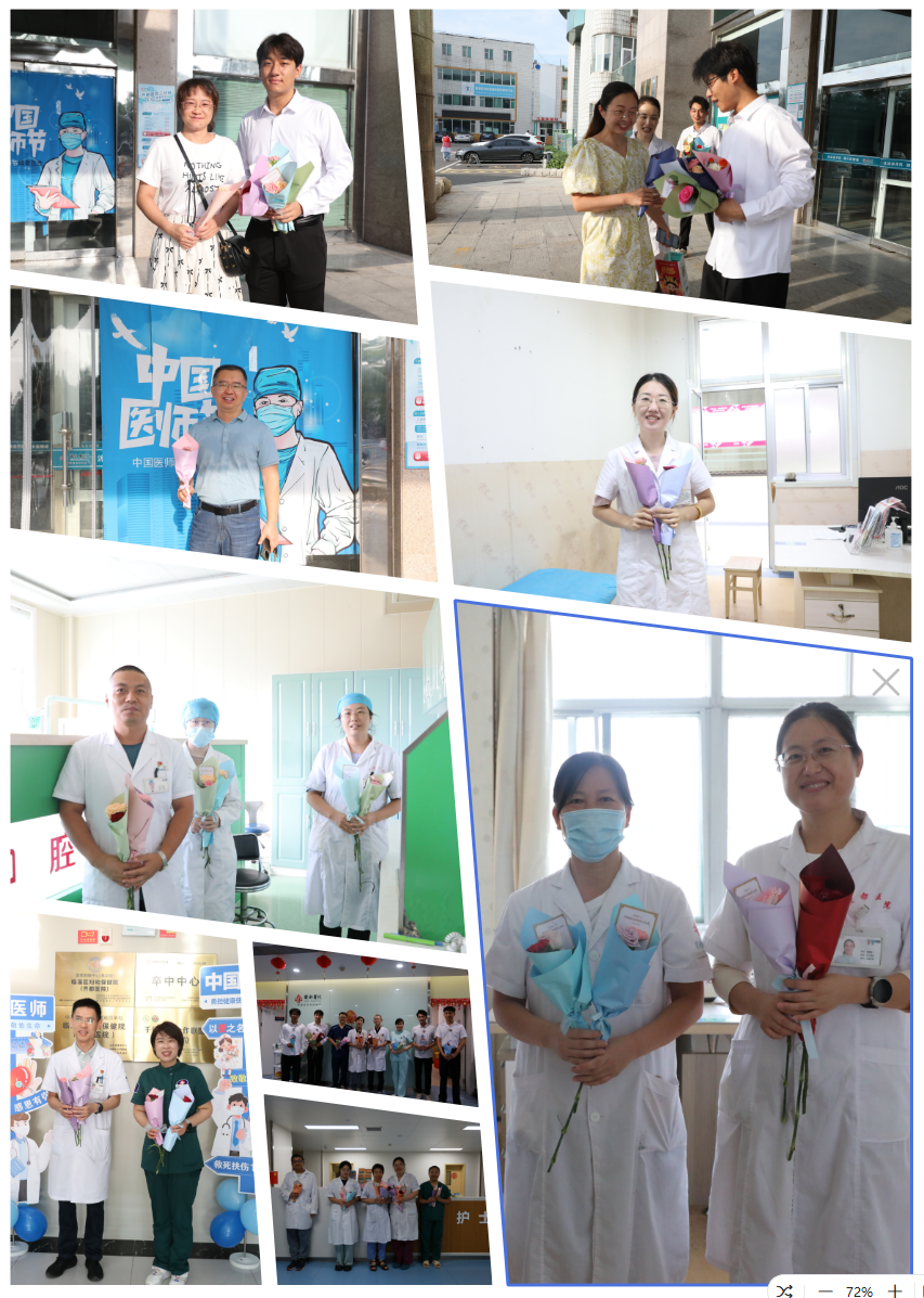 清晨,门诊大厅内洋溢着节日的欢快氛围。淄博鑫泰石化的工作人员早早抵达,他们手捧娇艳鲜花,带着温暖的笑容,为每一位医师送上节日祝福。一朵朵鲜花承载着社会各界对医师们辛勤付出的认可与感激,医师们接过鲜花,脸上绽放出欣慰的笑容,用温暖的微笑回应这份美好,开启了节日的美好一天。
