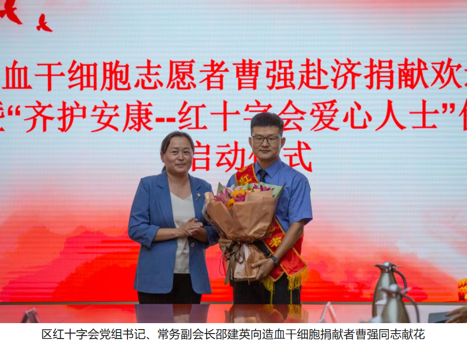 9 月 18 日,“造血干细胞志愿者曹强赴济捐献欢送会暨‘齐护安康 —— 红十字会爱心人士’保险启动仪式” 在临淄区行政办公中心八楼会议室举行。作为本次保险项目的承担方与医疗保障核心力量,临淄区妇幼保健院(齐都医院)以实际行动践行公立医院社会责任,为红十字会爱心人士筑起健康守护屏障,为公益事业注入医疗暖流。